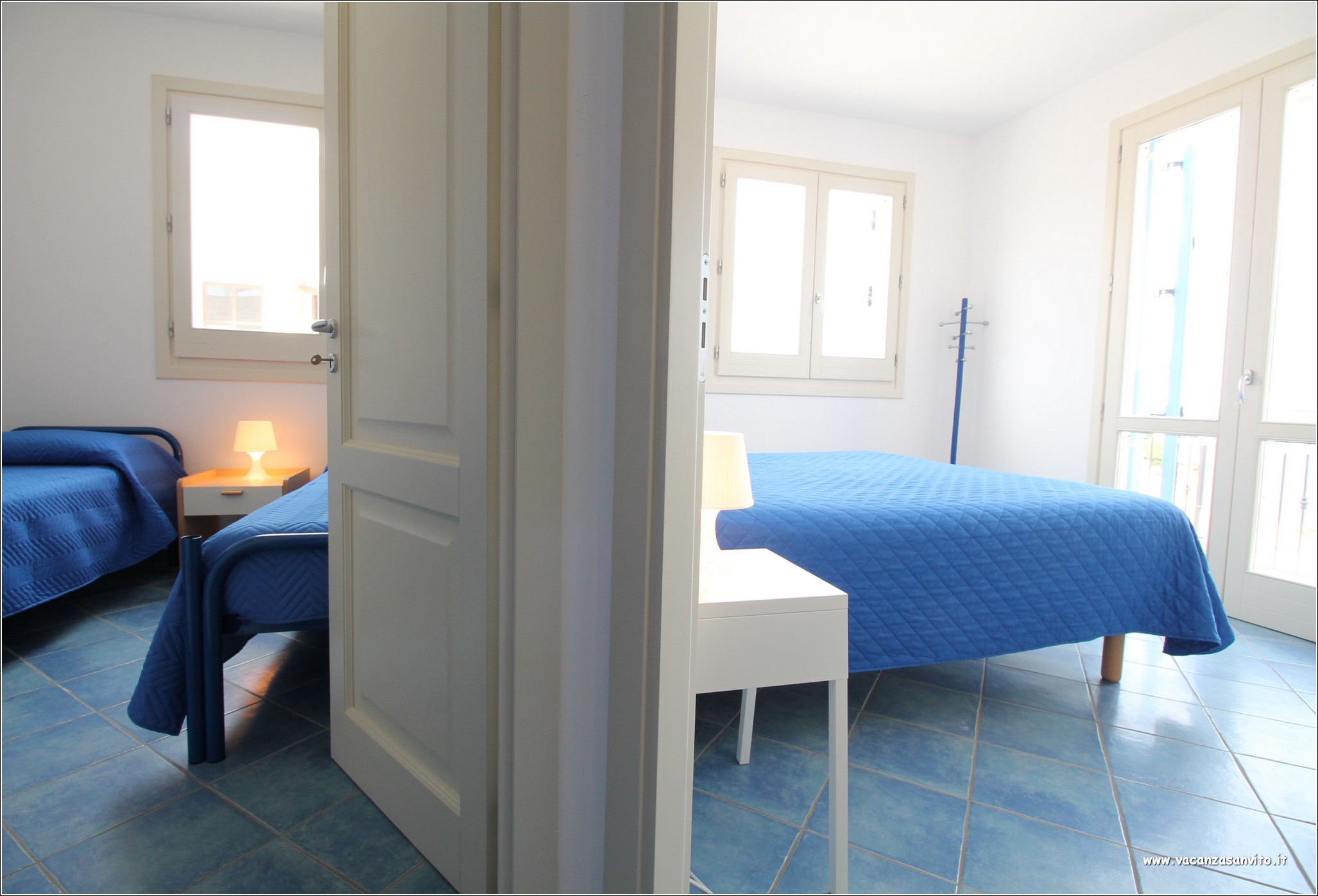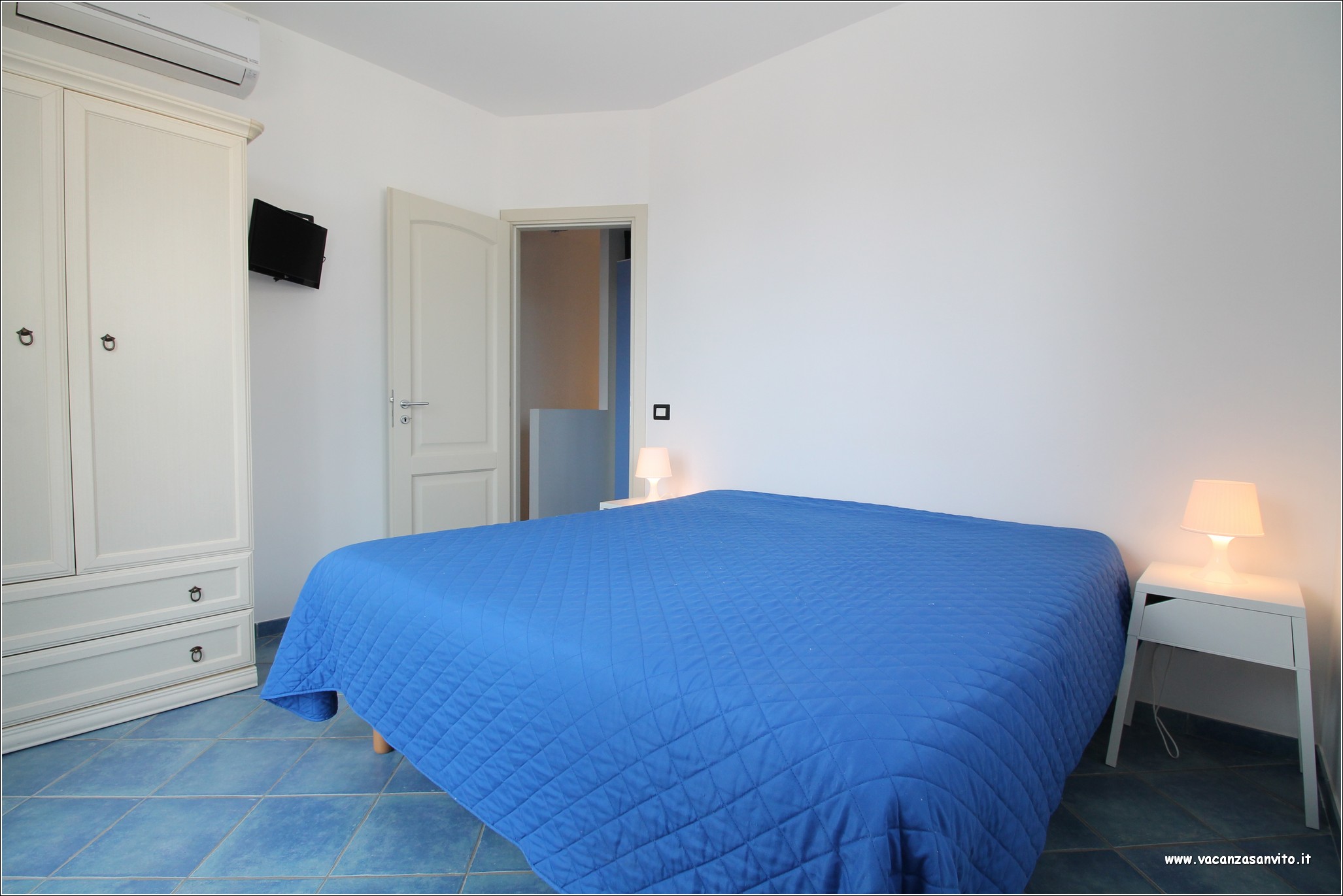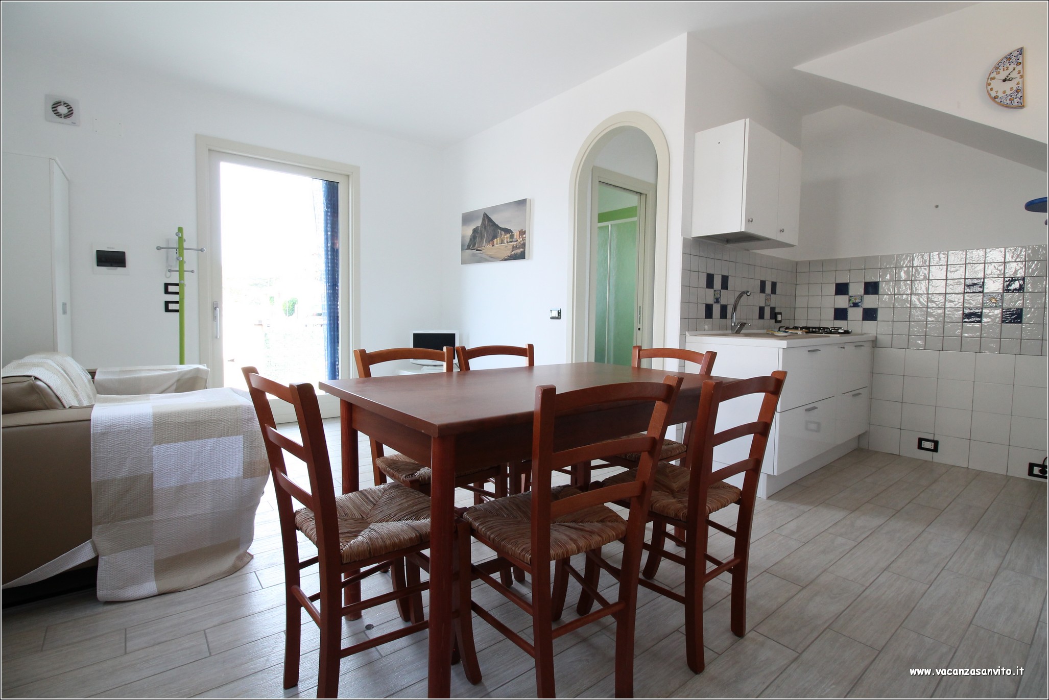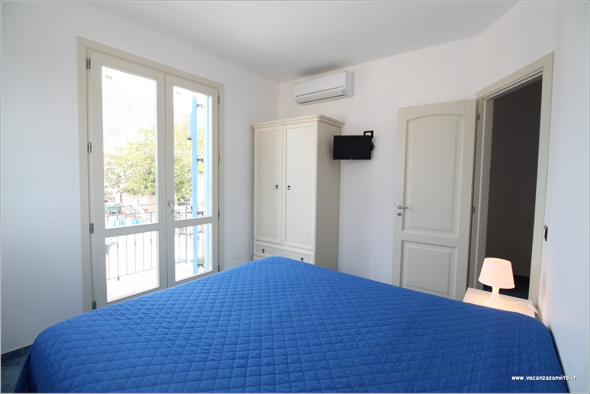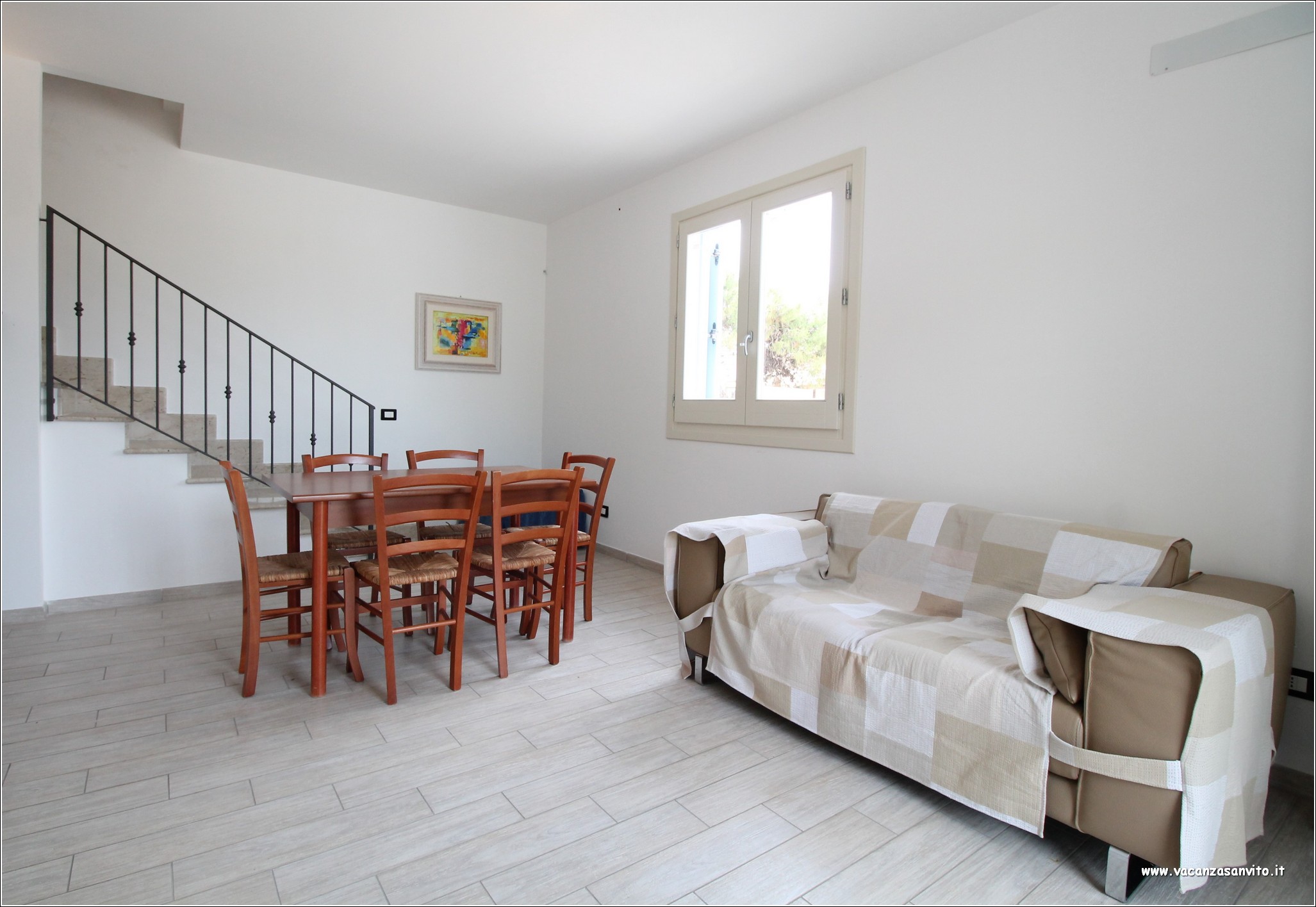 La casa Ulisse fa parte dello stesso residence in cui si trovano Venere, Enea, Polena e Cassandra, ovvero, residence Costa Turchese. Questa casa, più delle altre, è vicina alla spiaggia, ovvero 20-30 metri effettivi di percorso. L‘immobile si sviluppa su due livelli, piano terra e primo piano. Si accede da una veranda al piano terra, ampia circa 16 mq, con posto auto e spazio per tavolo e sedie. Si entra direttamente in soggiorno con angolo cottura. Sempre al piano terra si trova la lavanderia ed uno dei due bagni. Dalla scala in muratura si accede al primo piano, zona notte, ovvero alle due camere da letto, una matrimoniale ed una doppia che all‘occorrenza si trasforma in matrimoniale, avvicinando i letti, nonchè al secondo bagno. Dalla cameretta si accede, tramite una scala a chiocciola, alla terrazza della casa con vista strepitosa sulla spiaggia di San Vito lo Capo. La terrazza è accessoriata con tavolo e sedie, adatte alle colazioni e cene all‘aperto. La casa dispone di un solo impianto di climatizzazione, posizionato nella camera da letto matrimoniale, che viste le dimensioni ridotte del primo piano è sufficiente a raffreddare anche l‘altra camera. La casa può ospitare fino ad un massimo di 4/5 persone (con l‘aggiunta di una branda/pouf per la quinta persona), ed è accessoriata di lavatrice, tv, ferro da stiro, phon, barbecue, wifi ed appunto aria condizionata.