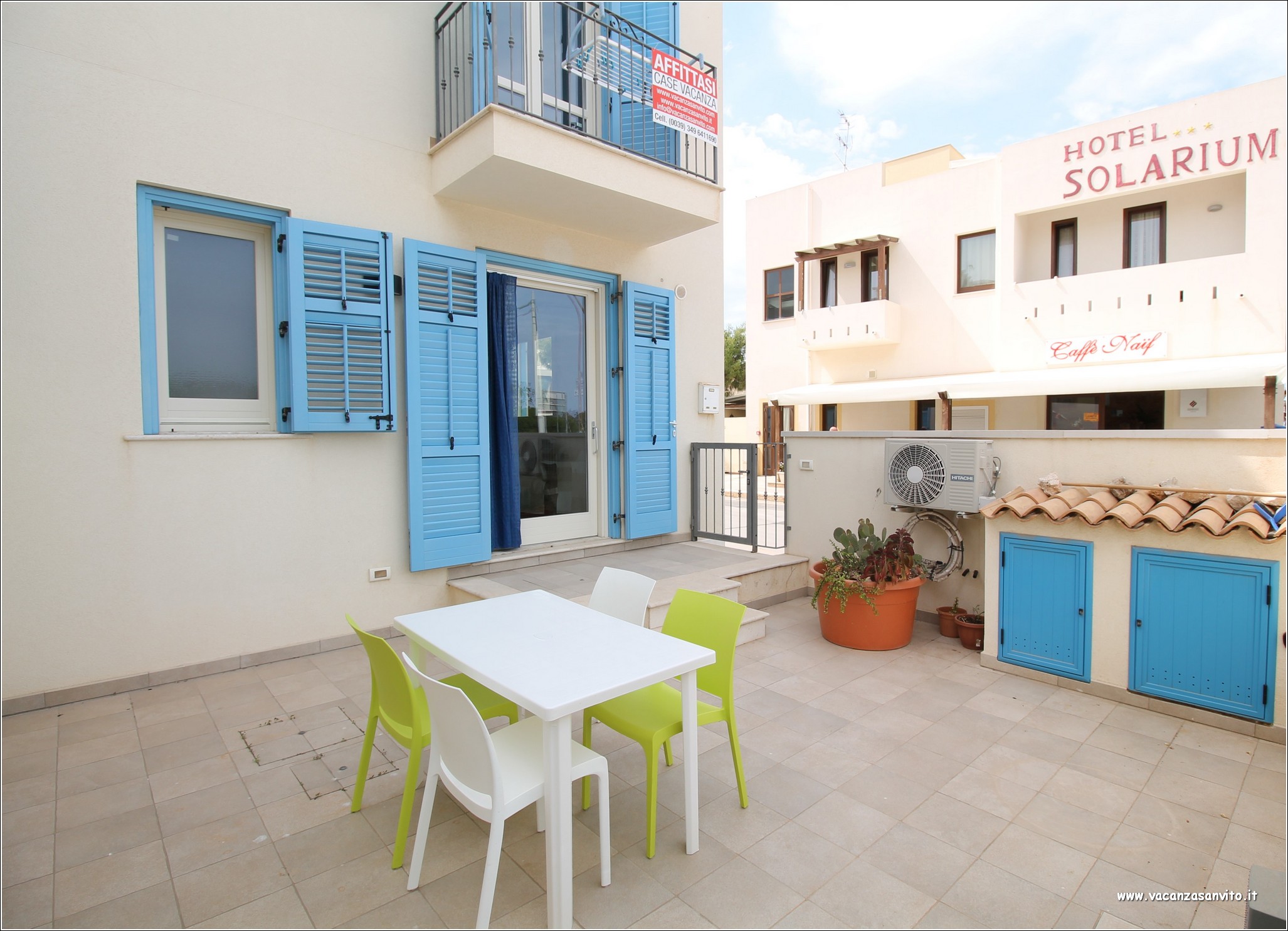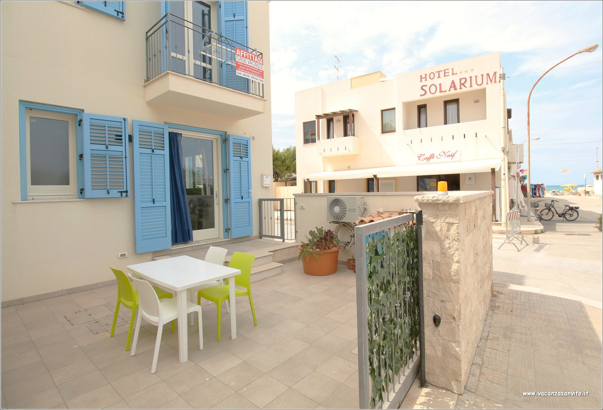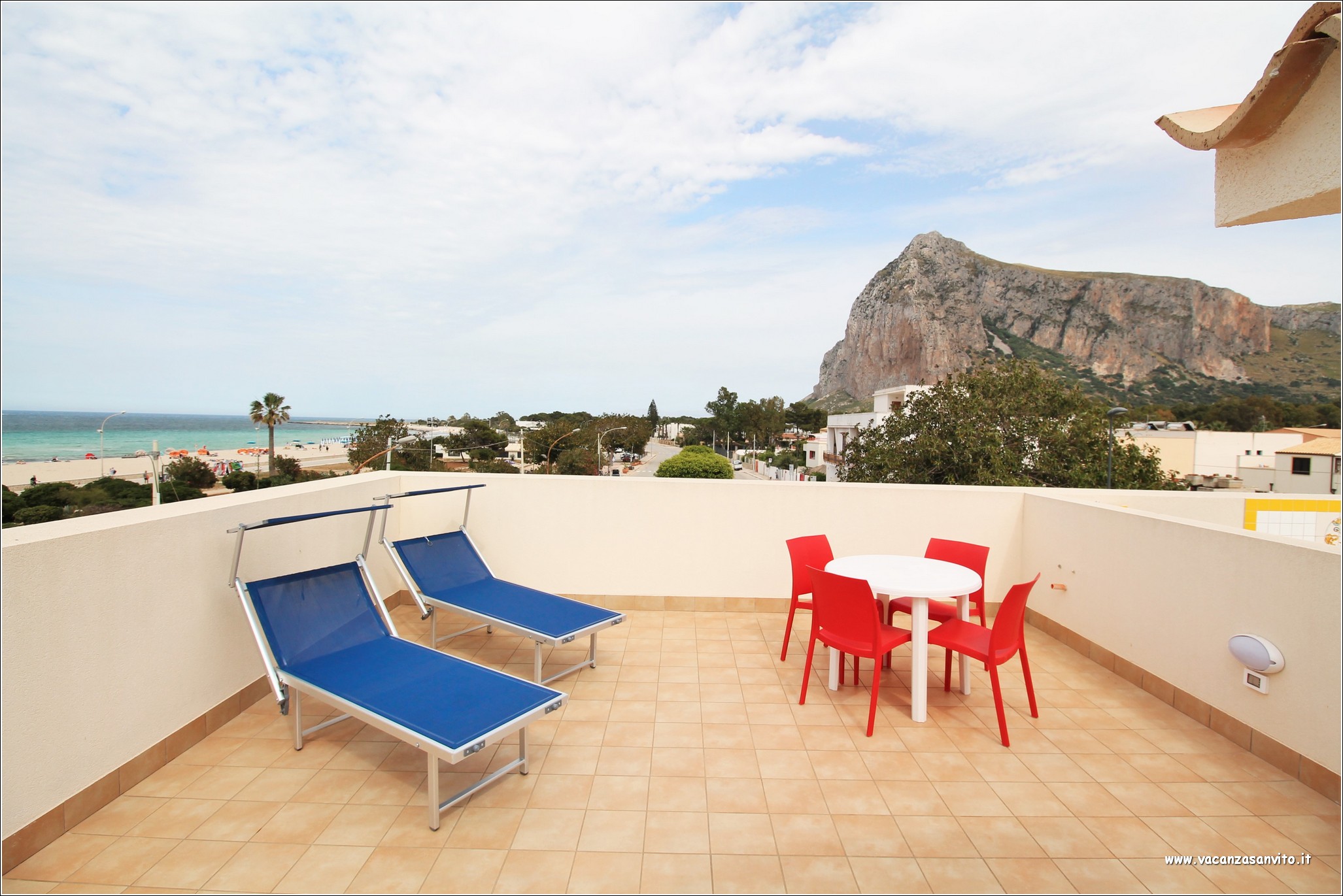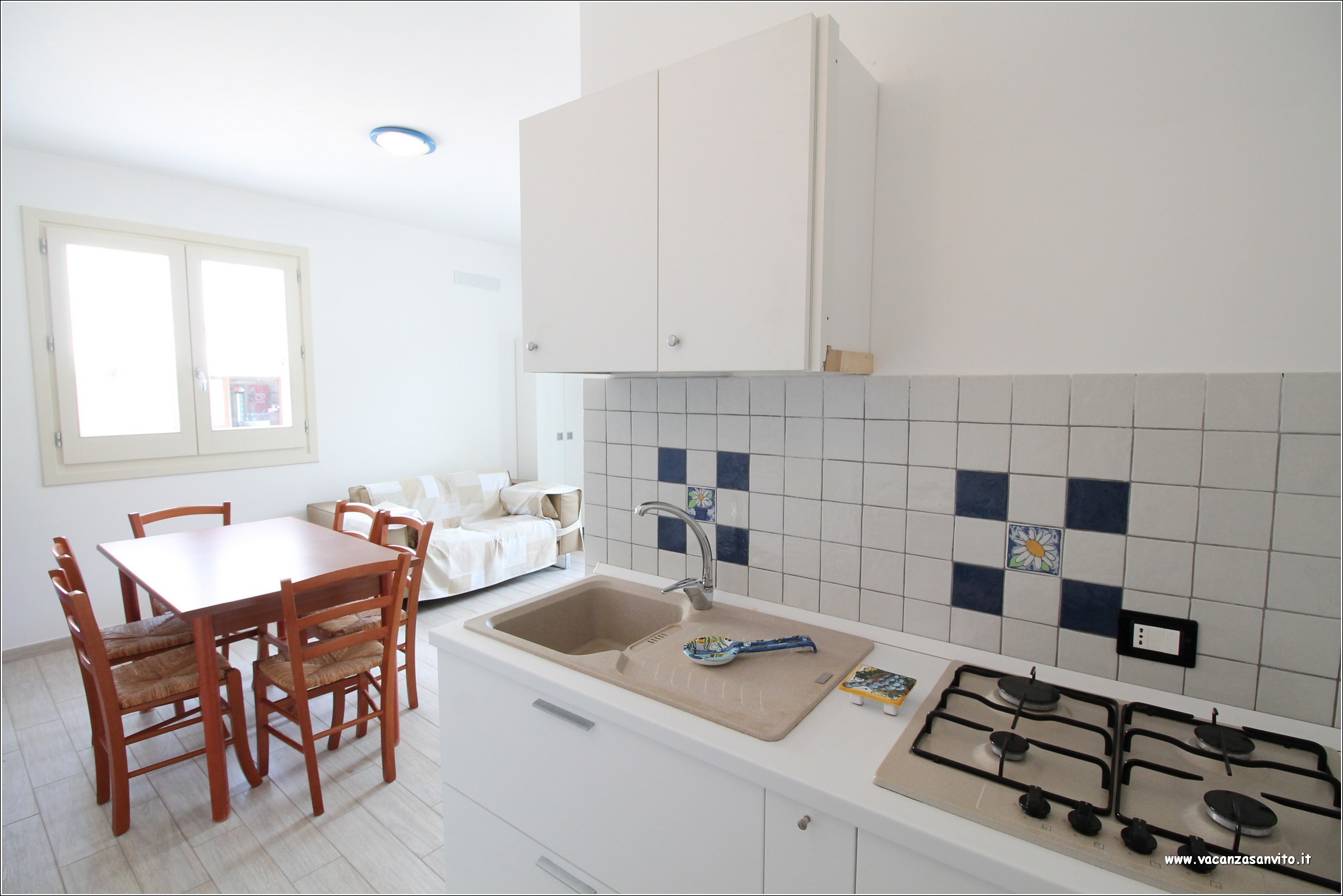 La casa Ulisse fa parte dello stesso residence in cui si trovano Venere, Enea, Polena e Cassandra, ovvero, residence Costa Turchese. Questa casa, più delle altre, è vicina alla spiaggia, ovvero 20-30 metri effettivi di percorso. L‘immobile si sviluppa su due livelli, piano terra e primo piano. Si accede da una veranda al piano terra, ampia circa 16 mq, con posto auto e spazio per tavolo e sedie. Si entra direttamente in soggiorno con angolo cottura. Sempre al piano terra si trova la lavanderia ed uno dei due bagni. Dalla scala in muratura si accede al primo piano, zona notte, ovvero alle due camere da letto, una matrimoniale ed una doppia che all‘occorrenza si trasforma in matrimoniale, avvicinando i letti, nonchè al secondo bagno. Dalla cameretta si accede, tramite una scala a chiocciola, alla terrazza della casa con vista strepitosa sulla spiaggia di San Vito lo Capo. La terrazza è accessoriata con tavolo e sedie, adatte alle colazioni e cene all‘aperto. La casa dispone di un solo impianto di climatizzazione, posizionato nella camera da letto matrimoniale, che viste le dimensioni ridotte del primo piano è sufficiente a raffreddare anche l‘altra camera. La casa può ospitare fino ad un massimo di 4/5 persone (con l‘aggiunta di una branda/pouf per la quinta persona), ed è accessoriata di lavatrice, tv, ferro da stiro, phon, barbecue, wifi ed appunto aria condizionata.